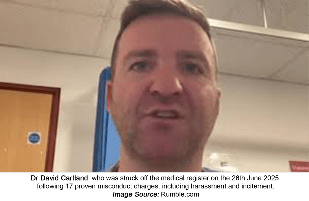 Perhaps most contradictory was the argument that Dr Cartland had been left “in a bad place” by public criticism of his conduct, while simultaneously asserting that his own statements could not have harmed others. For some, this may have reinforced the view that Cartland was aware of the emotional impact such online commentary can carry and chose to ignore that risk, when directing it at others.