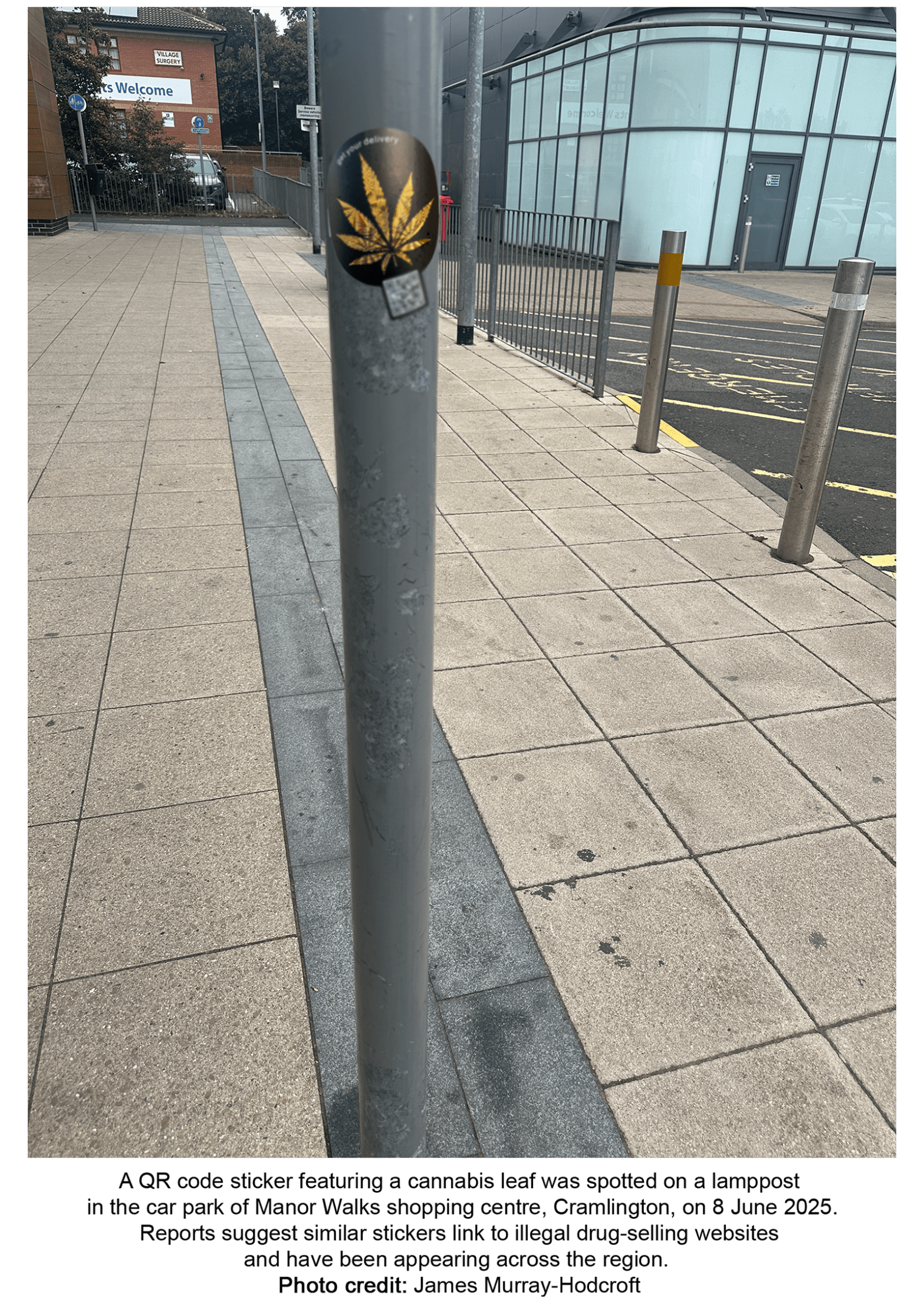QR code stickers linking to illegal drug-selling websites have been spotted around Manor Walks shopping centre in Cramlington, sparking fresh concerns about youth safety, retail crime, and increasingly sophisticated tactics used by dealers.