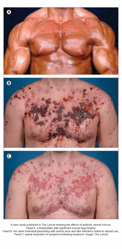 Both Katana and Richardson highlighted the physical and psychological risks of anabolic steroids. Reported side effects include insomnia, acne, mood swings, and paranoia. Long-term effects can be more severe: infertility, testicular shrinkage, liver and kidney damage, and increased risk of heart disease.