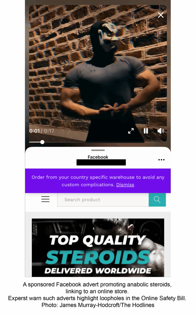 The sponsored posts, some of which show images of a young man bulking up on the products, suggest that stock is already held in the UK, with delivery times of just days. Campaigners argue that the adverts exploit loopholes in the Online Safety Bill, introduced in October 2023, which relies on accurate labelling of websites in order to filter harmful content.